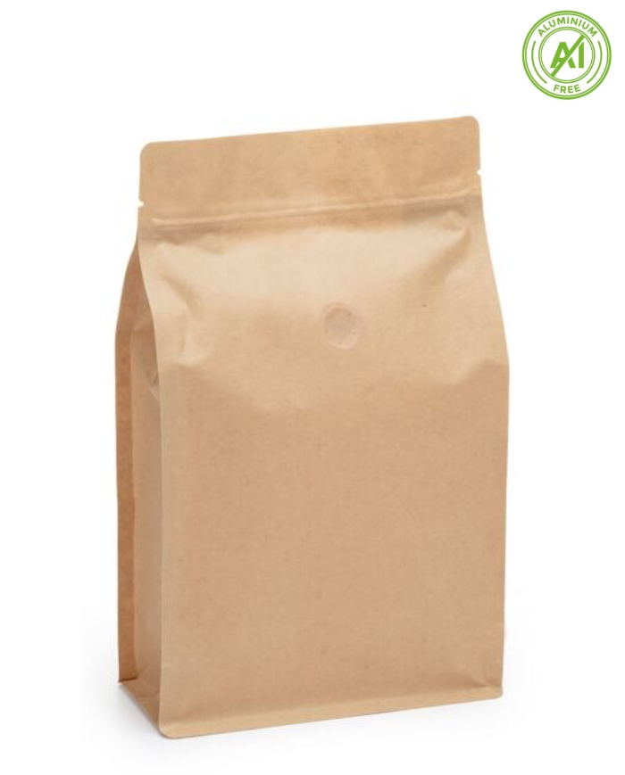 The flat bottom paper bag is made of unbleached kraft paper, BOPA and PE foils, which are ideal for protection against moisture and oxygen.