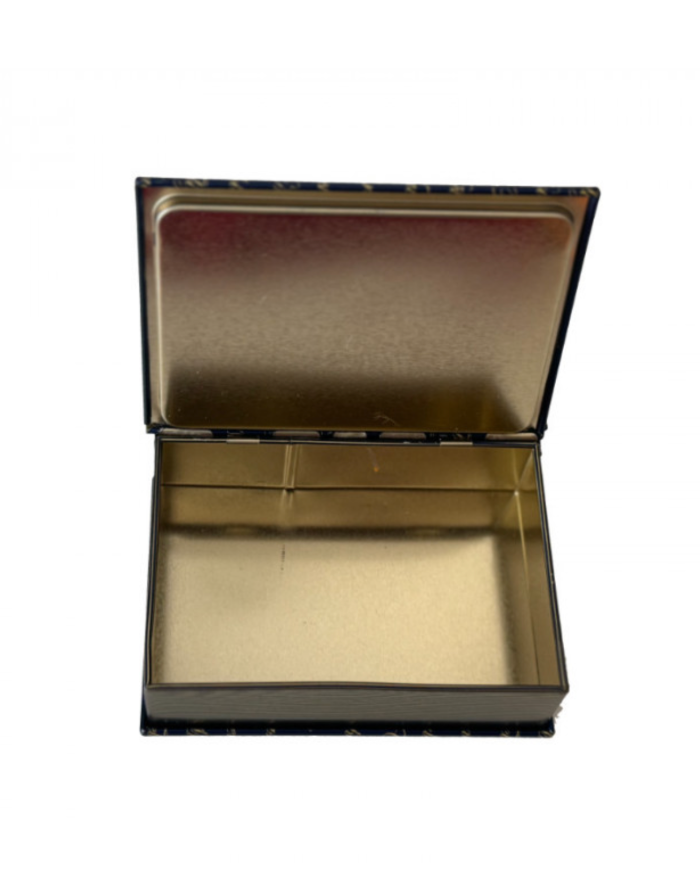 Tea tins are very popular with tea fans. Tin cans are timeless, beautiful and have long since become cult and collector's items. The unique tin can in the shape of a gold book. The jar is metal, health-friendly with an anti-corrosion coating, intended directly for food use.