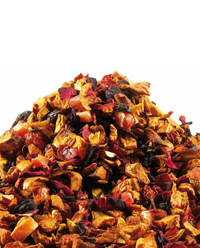 Flavoured fruit tea blend with winterly apple-cinnamon-taste.