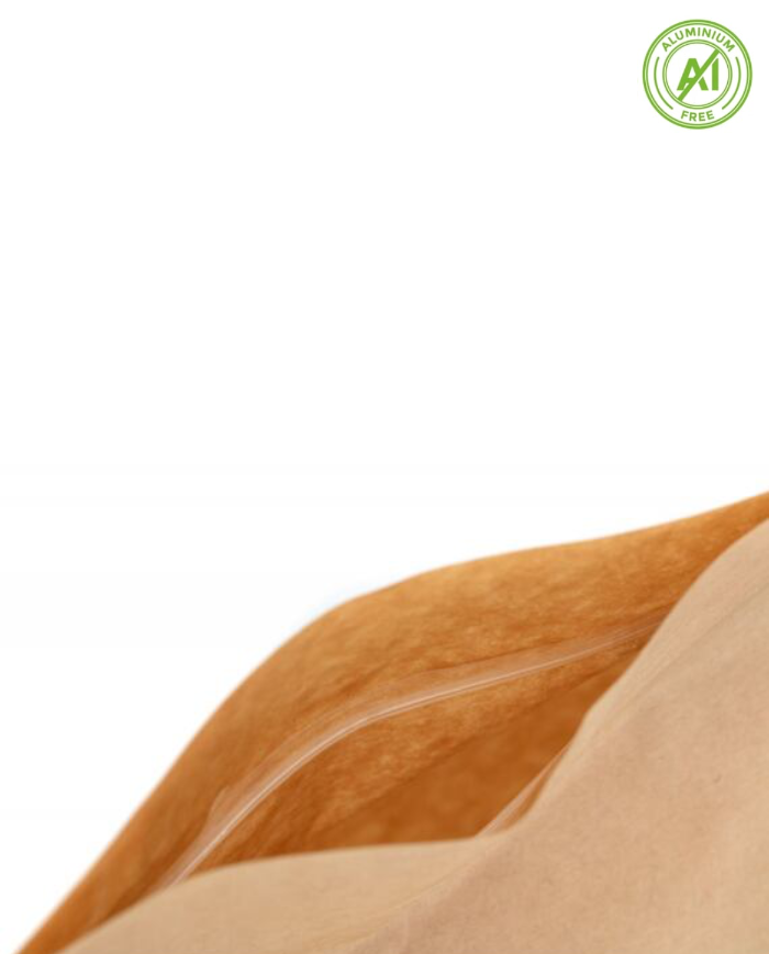 Vrecko s plochým dnom je vyrobené z nebieleného kraft papiera, a dvoch fólií BOPA a PE, ktoré plne nahrádzajú hliníkovú vrstvu. Kombinácia fólií BOPA a PE zaisťuje vynikajúce bariérové vlastnosti proti vlhkosti a kyslíku a plne nahradzujú hliníkovú vrstvu. Tento obal bol navrhnutý s dôrazom na predĺženie trvanlivosti vašich výrobkov a prírodný vzhľad. Opätovne uzatvárateľný ZIP pomáha udržať sviežosť produktu. Pokiaľ vrecko nad týmto uzáverom zavaríte, konečný užívateľ iste ocení odtrhávacie zárezy pre jednoduché odtrhnutie a otvorenie vrecka.
